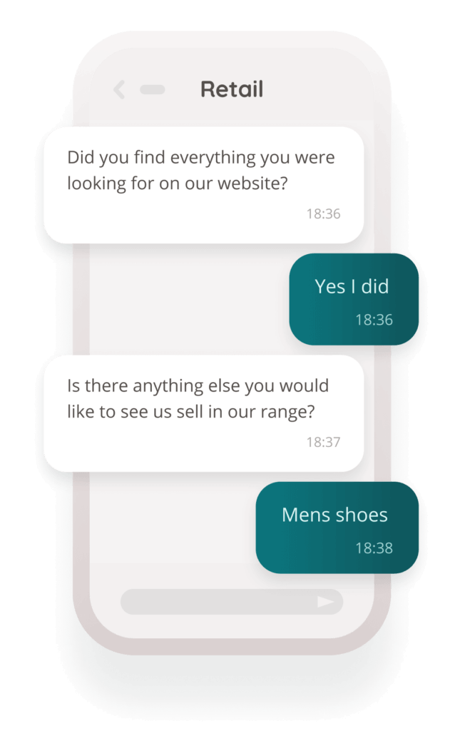 Construct and build your very own tailor-made SMS surveys. Ask whatever questions you want about your business, then check the responses and export the data. Easy as that.